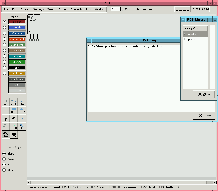Geda PCB utility startup screenshoot